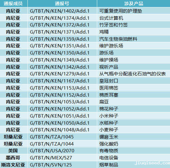 WTO技贸措施通报速递(11月27日)