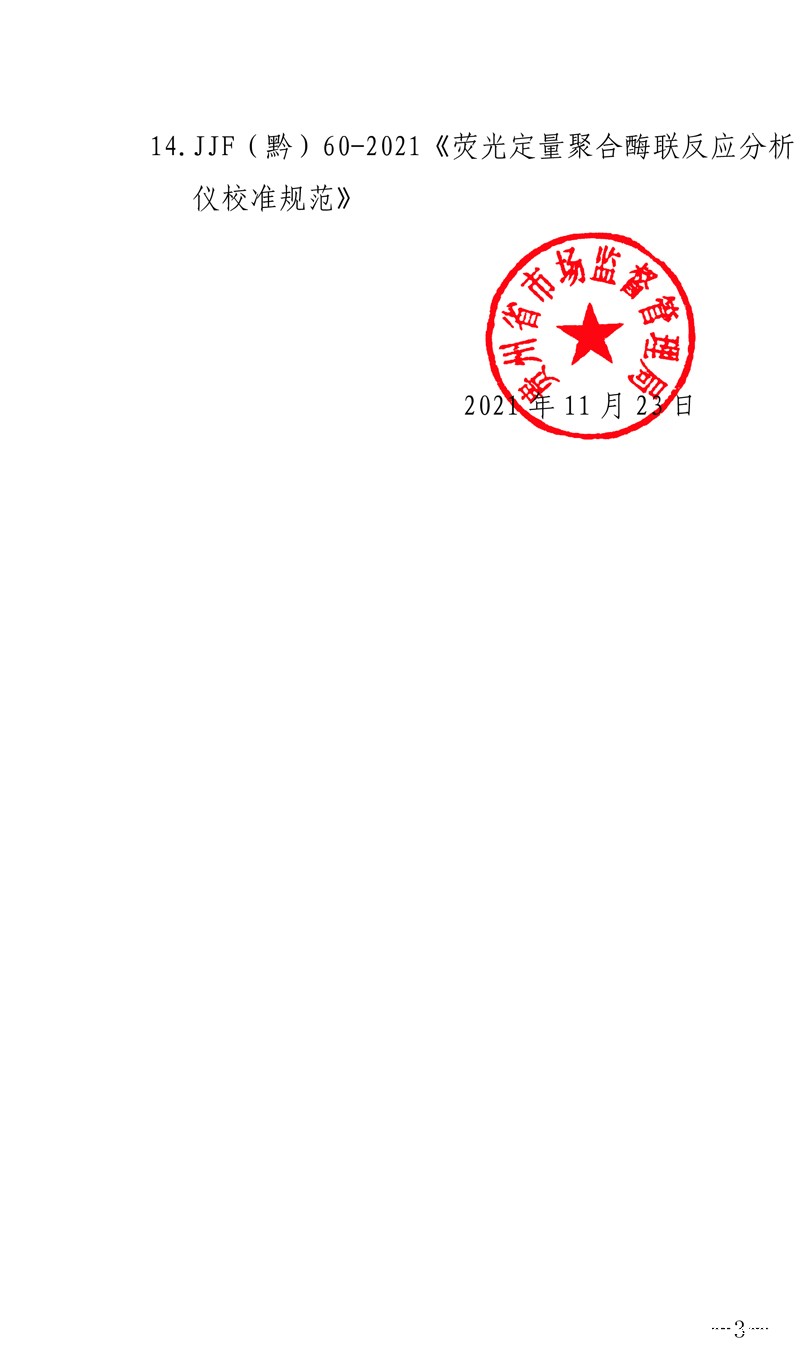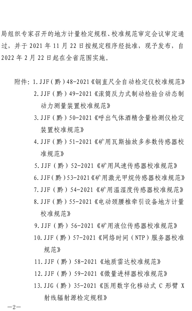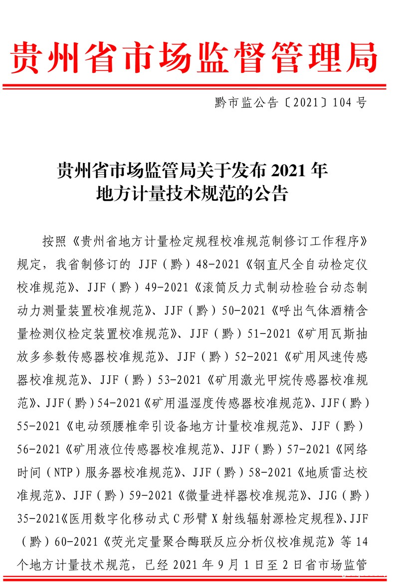 贵州省市场监督管理局关于发布 2021年地方计量技术规范的公告 |