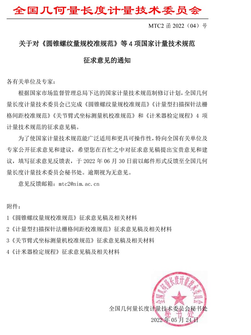 全国几何量长度计量技术委员会关于《计米器检定规程》等4项规程征求意见的通知