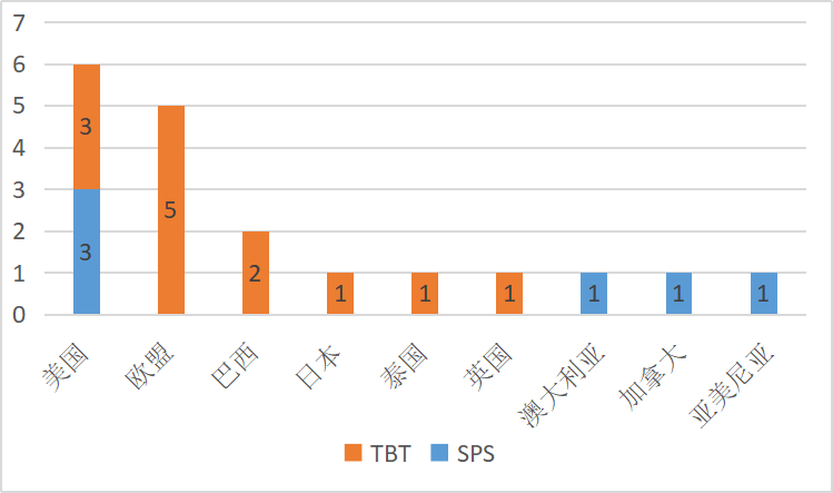 2024年3月7日,共有9个WTO成员通报了19项技术性贸易措施,其中13项为TBT措施,6项为SPS措施。通报情况为:美国6项、欧盟5项、巴西2项、日本1项、泰国1项、英国1项、澳大利亚1项、加拿大1项、亚美尼亚1项。这些措施涉及沼气,软木木材,铁燧石铁矿石,化肥产品,可能对中枢神经系统有影响的物质,无线电设备等。通报详情如图表所示。